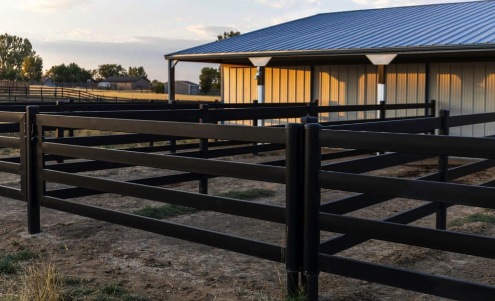 Fencing materials use a metal powder-coated frame with customizable infills. It combines the strength of metal with the privacy of wood or vinyl, making it a favorite for fencing for land developers in Utah.